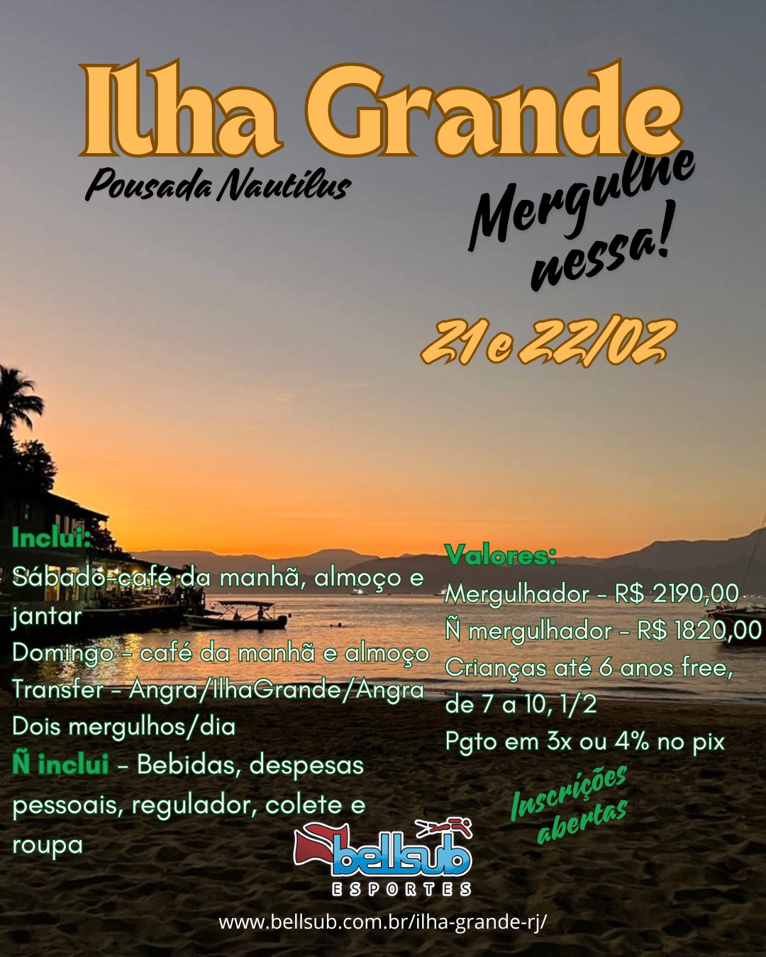 Ilha Grande, situada ao sul do Rio de Janeiro e a 360 km de São Paulo, é um destino de mergulho excepcional, influenciado pelo clima tropical do Oceano Atlântico. Com temperaturas médias de 25°C no ar e 22°C na água, a ilha oferece condições ideais para mergulhos em suas águas calmas e quentes, com visibilidade variando de 5 a 25 metros. O local é conhecido por seus pontos de mergulho diversificados, incluindo lajes, grutas, naufrágios e mergulhos noturnos. A baía da Ilha Grande, rica em história e lendas, foi cenário de batalhas e naufrágios de galeões europeus entre os séculos XVI e XIX. Além dos mergulhos, a ilha é ideal para passeios por trilhas, visitas a locais como a Lagoa Azul e a Gruta de Acaiá, e relaxar em belas praias. Com excelente infraestrutura de transporte, pousadas à beira-mar e uma oferta gastronômica de qualidade, Ilha Grande é um destino perfeito tanto para mergulhadores quanto para aqueles que buscam desfrutar de paisagens deslumbrantes e um ambiente acolhedor.