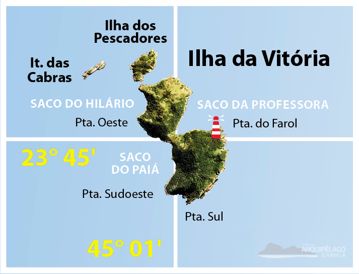 Próximo a ilha encontra-se o conhecido lugar chamado “Saco da Professora” também excelente para pesca e mergulho. Localizado ao leste da Ilha da Vitória, possui de 6 a 12 metros de profundidade com águas claras e calmas, com o fundo de areia e muitas espécies de peixes.